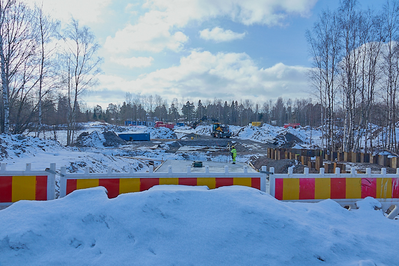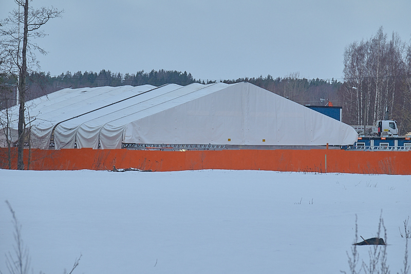 Finnoon metrokeskuksen paikalla on iso teltta. Tuli heti mieleen, että Länsimetro on joutunut karsimaan kutannuksia 🙂
