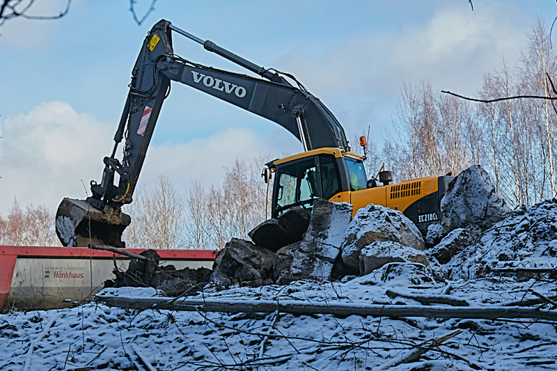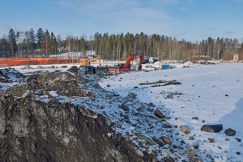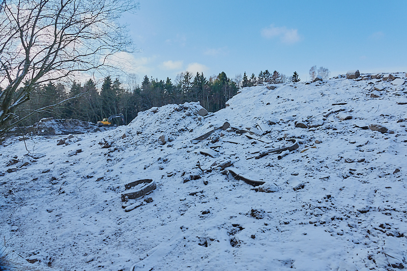 Täyttömäestä on jäljellä enää noin 25%-30%. Jäljellä oleva osa on pääosin metron hissikuilun työmaan ympärillä. Jos mäyräperhe oli vielä paikalla viettämässä talviuntaan , niin viimeistään kuluneelle viikolla se kohtasi tiensä pään.