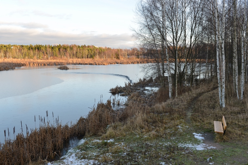 Vesi pysyi edelleen korkealla, vaikka ihan huippuja ei enää saavutettu, ja meriveden korkeuden vaihtelu oli välillä +50-70cm. Tulvaniitty pysyi järvenä ja linnut tuntuivat viihtyvän. Haapanan ruoskavihellys kuului, mutten (JR) saanut näköhavaintoja. Alkuviikon yöpakkaset saivat tulvaniityn ja myös altaan osittain jäähän. Ja sitten sunnuntaina tehtiin joulukuun kaikkien aikojen lämpöennätyksiä. Ilmatieteen laitoksen virallisen mittauksen mukaan oli Tapiolassa sunnuntaina +11,1.