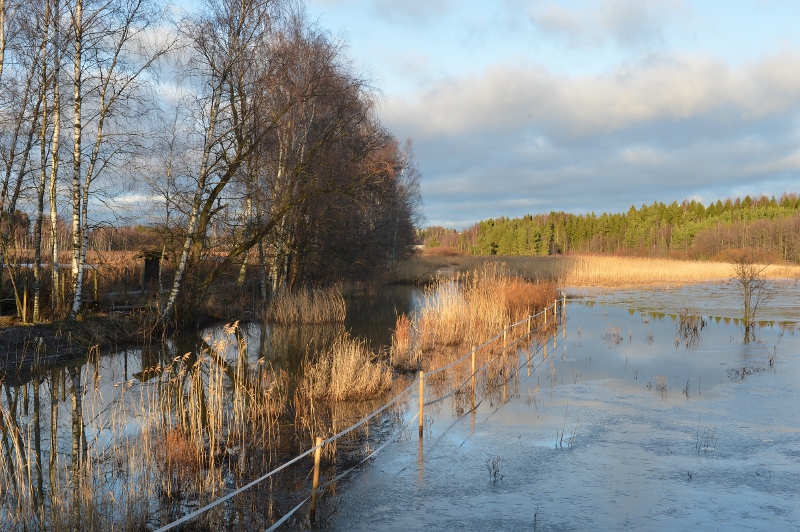 - Pakkasyön jälkeen tulvaniitty oli jässä – Kuva: Tommi Heinonen