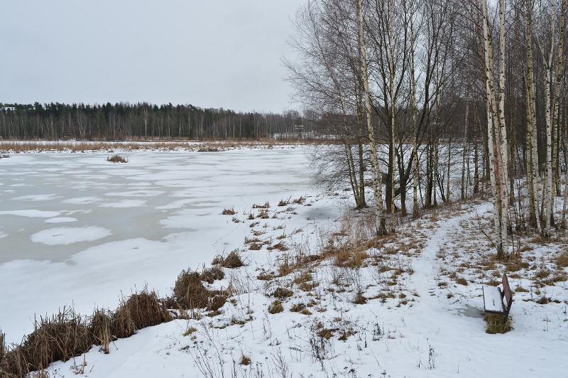 Niin ei se vieläkään oikein talvelta tunnu. Ehkäpä tällainen on uusi standarditalvi. Nollan ympäristössä sahaava lämpötila, välillä pikkupakkasta ja sitten taas plussan puolella. Helmikuun alun seurantakuvassa on lunta ja allas jäässä eli on talven tuntua. Vaihtelevasta lämpötilasta huolimatta maisema on pysynyt valkoisena koko viikon.