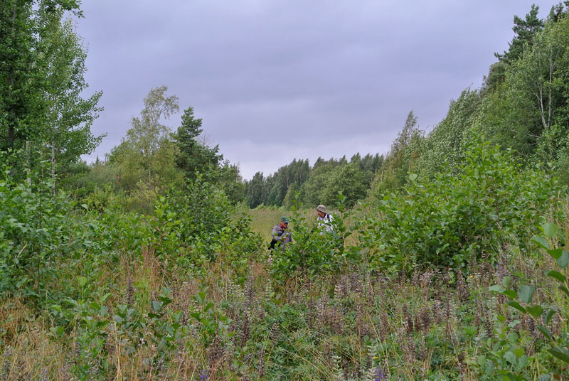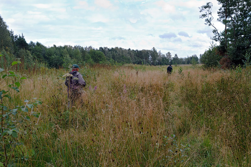 Kalastajantien ja luhtaniityn välisestä metsiköstä etsittiin harajuurta, joka oli jo aiemmin havaittu. Vaan eipä uudelleen löytö onnistunut. Kurkistettiin marskiviholaisten koloniapaikalle: oli hyvin kostea ja rehevän kasvuston vallassa, joten lähdetty enempää tunkeilemaan. Sen sijaan voitiin ihailla isoja kekomuurahaisten uurastuksen tuloksia. Mikäli kepit maastossa ja muut merkit indikoivat Suomalaisentien linjausta on syytä olla huolissaan: niin läheltä se liippaa marskeja.