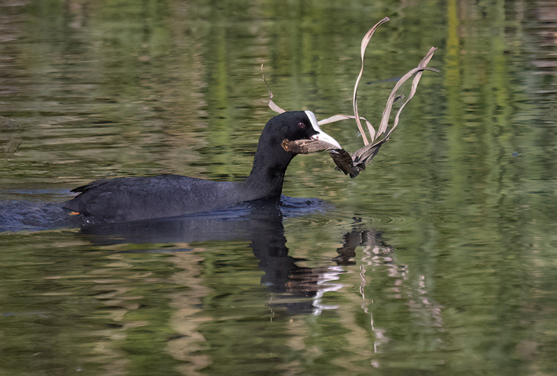 - Nokikana vie pesänkohennustarvikkeita – Kuva Esa Mälkönen