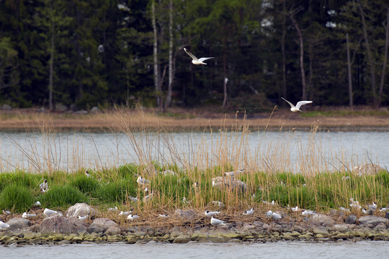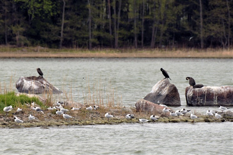 Lintujen pesinnät alkaneet, telkillä jo poikaset. Haarapääskyt, tiirat ja pikkulokit hakevat pinnalta pohjasta kuoriutuneita hyönteisiä.