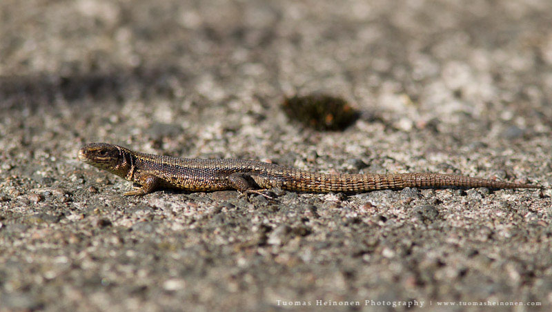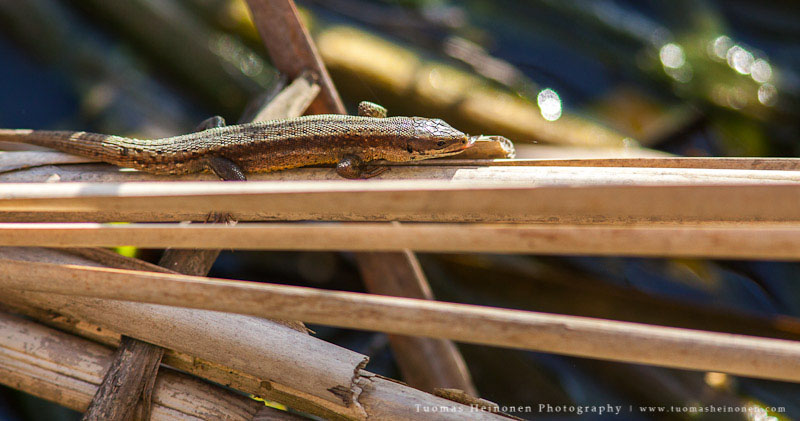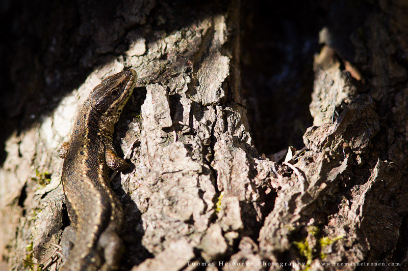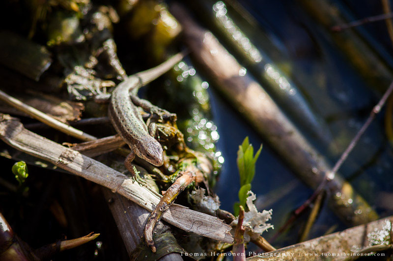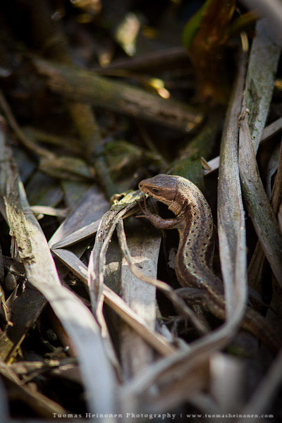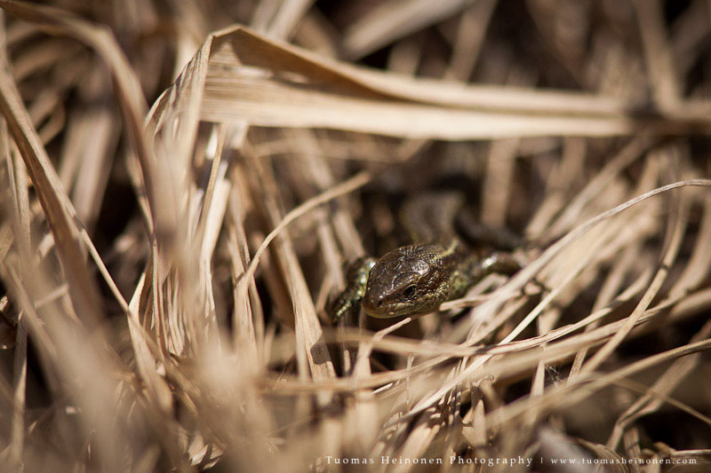 Olin nauttimassa kevätauringosta täyttömäen vieressä betoniputken päällä , kun vieressä rasahti. Silmä tarttui heinikossa olevaan sisiliskoon. Onneksi olin ottanut lyhyemmän telen mukaan, koska 500 mm:llä ei olisi näitä kuvia otettu.