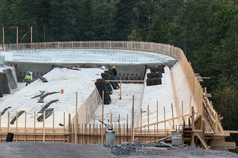 Kuten viime viikolla uumoilimme, on Finnevikin silta saanut kannen. Vain pieni osa molemmista päistä – liittyminen maatasoon – vielä puuttuu. Kannen betonointi on yllättävän paksu maallikon silmin katsottuna. Pitäähän sen kestää liikennettä, joten kuormaakin tulee. Tiistilän päässä tienkin pohja alkaa olemaan valmiin näköinen. Kalastajantien risteyksen ympyrää vielä odotetaan.