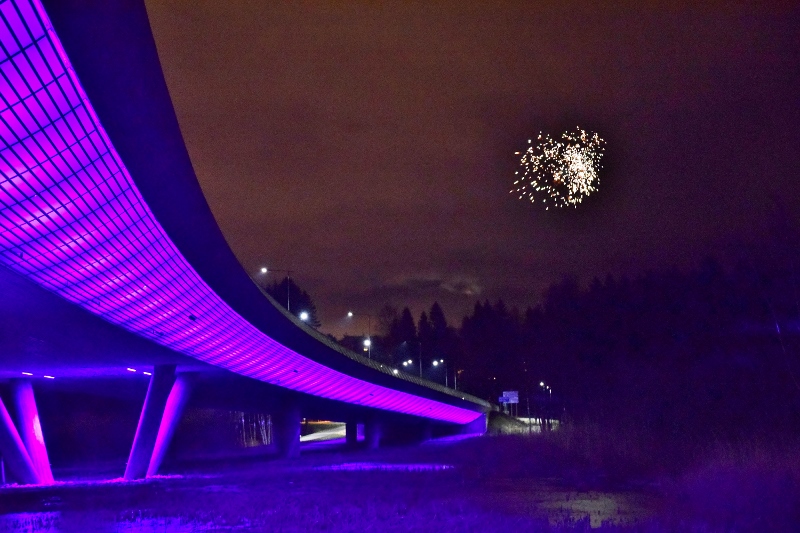 Keskitytään tässä muutosraportissa vielä Finnevikinsillan valoihin. Uutena vuonna oli erityinen valoshow – ”led-ilotulitus”. Valo vaihtui väreiltään ja se oli myös jatkuvassa liikeessä ja aina välillä sillan sivut ”ammuttiin” täyteen.