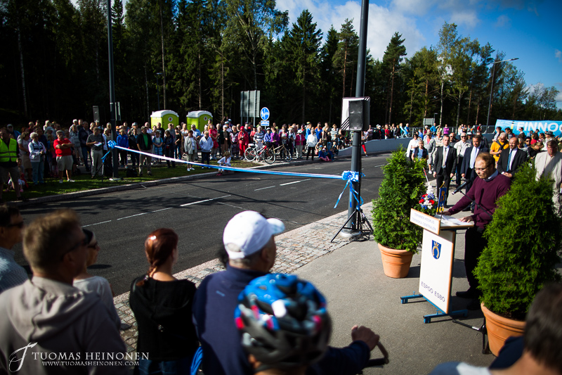 Puheiden jälkeen vuorossa oli juhlanauhan leikkaus ja ensimmäisenä nauhasta palasen leikkasi Espoon kaupunginjohtaja Jukka Mäkelä. Lopuksi paikalla olleille lapsille tarjottiin mahdollisuus leikata omat palaset jäljelle jääneestä nauhasta.