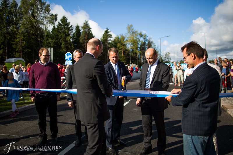 - Kaupunginjohtaja Jukka Mäkelä leikkaa juhlanauhan ensimmäisenä. Kuva: Tuomas Heinonen