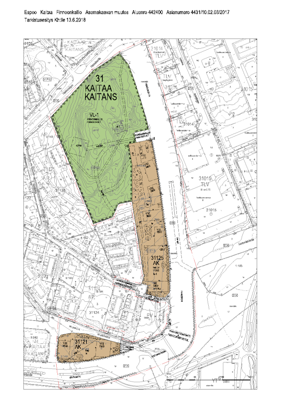 Kaksi viikkoa sitten kerrottiin Finnoon keskuksen asemakaavan kiemuroista ja askeleista ees-taas. Kaava oli toistamiseen kaupunginhallituksessa ja nyt se etenee valtuustoon. Valtuusto puolestaan hyväksyi Finnoonkallion asemakaavan. Nämä ovat vähän kuin sisko ja sen väli. Finnoonkallio sijoittuu rakenteella olevan Finnoonsillan (katu) länsipuolelle ja Finnoon keskuksen kaava taasen itä- ja kaakoispuolelle. Finnoonsillasta näyttää tulevan uuden Finnoon keskeinen katu.
