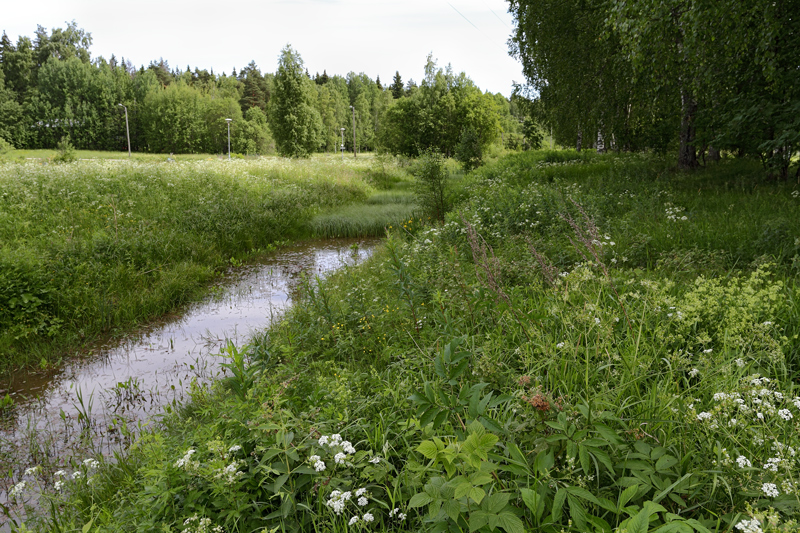 Kun viikolla 24 kävelin Finnoonpuron latvahaaroja tulin tiedostaneeksi Puolarmaarin ryhmäpuutarhan alueelta tulevan kolmannen ”ison” haaran. Toki olen tiennyt sen olemassaolon, mutta en ollut ajatellut sen merkitystä. Niinpä toteutin purokävelyn jatko-osan viikolla 25 – raportointi on vain hivenen viivästynyt.