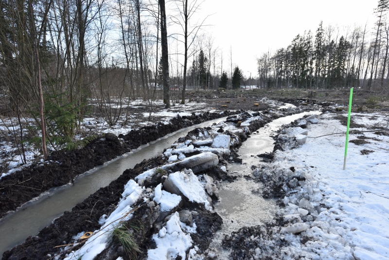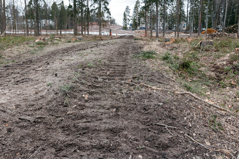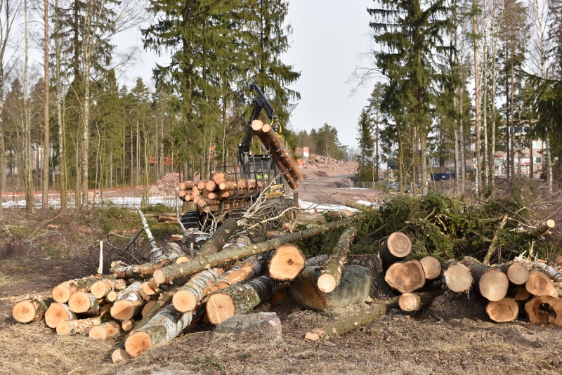Kivien varatointipaikan eteläpuoli Hylkeenpyytäjäntielle ja Kaitaantielle on ollut metsää. Kuluneella viikolla saapuivat metsurit koneineen ja vuorokaudessa kaatoivat metsän. Se oli ensi askel Finnoonsillan loppuosan ja metrokeskuksen töiden aloittamiselle.