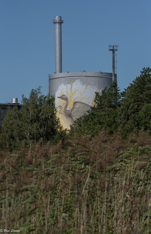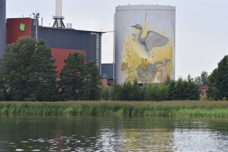 Lopuksi positiivista asiaa: voimalaitoksen muraali näkyy hienosti merelle.