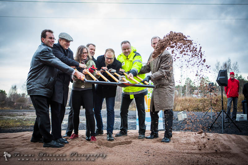 Finnooprojektin rakentaminen käynnistettiin juhlallisesti perinteiseen tapaan: avainhenkilöt lapioivat hiekkaa monikahvaisella lapiolla. Homma onnistui hyvin, koska paikalle oli tuotu pehmeää hiekka eikä siten tarvinnut hakata kovaa maata. Kyseessä tarkalleen ottaen oli uuden Finnoon katujen rakentamisen virallinen aloitus.