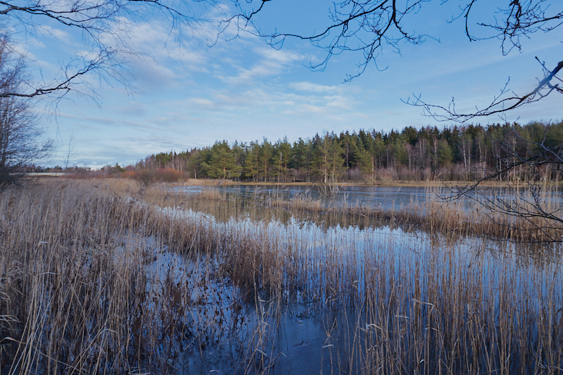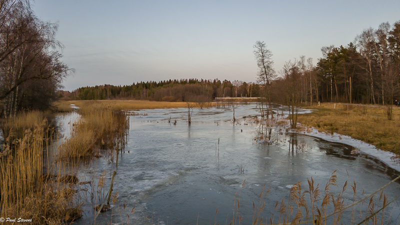 Sunnuntai 5 tammikuuta oli vaihteeksi kylmä talvinen päivä ja tulvaniitty sai ohuen ja osittaisen jääpeitteen. Sään ennustetaan lämpiävän ja todennäköisesti pysyvän lämpimänä koko tammikuun.
