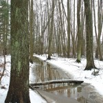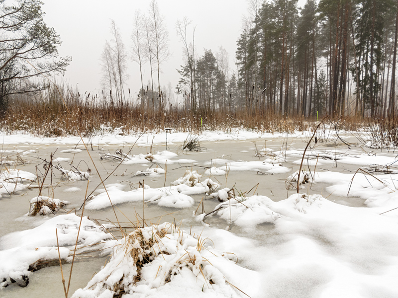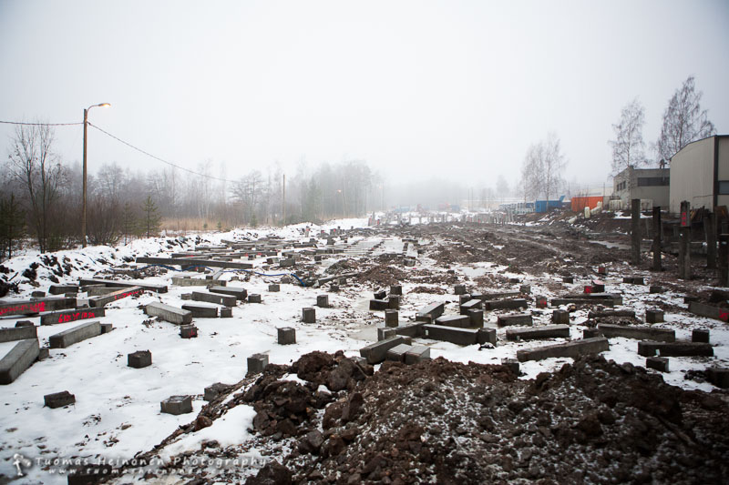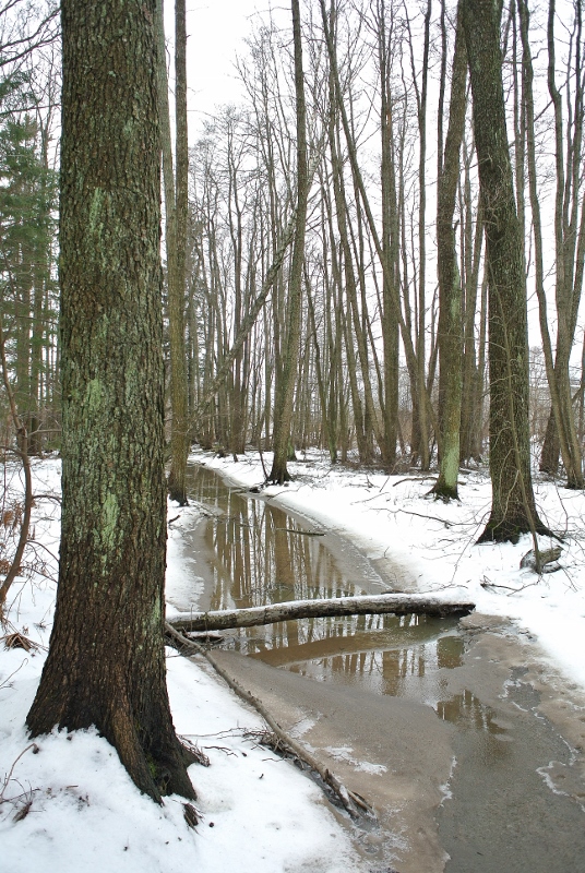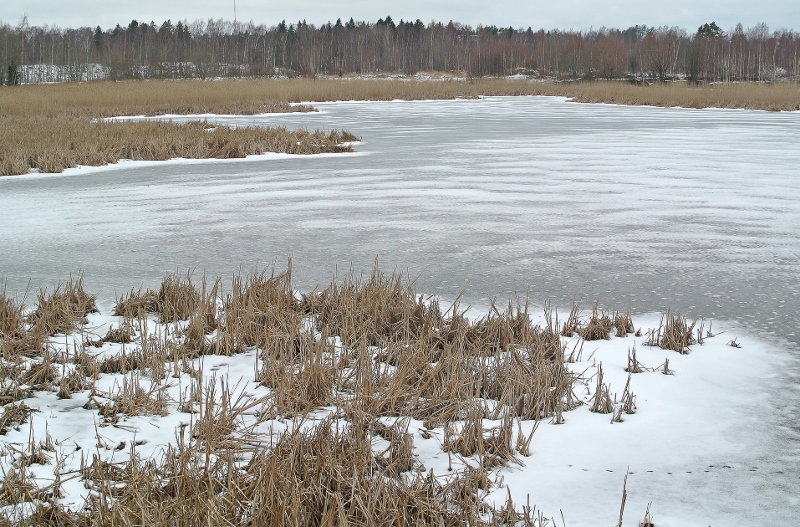 Tulvaniityllä on aika paljon täysin sulaa aluetta ja runsaasti vettä. Kasvimailta ruovikon läpi kohti työmaiden yhdistymistä menevä polku katkeaa sulaan. Itse asiassa vettä on miltei kasvimaan reunaan saakka. Kun merivesi on ollut pitkään ja on edelleen normaalia alempana, muutosraportissa aprikoitiin syytä seuraavasti: “Lieneekö rakentaminen estänyt Tiistinpuron (Distbäcken) valumisen etelään päin ja vesi jää nyt normaalia ylemmäksi.”