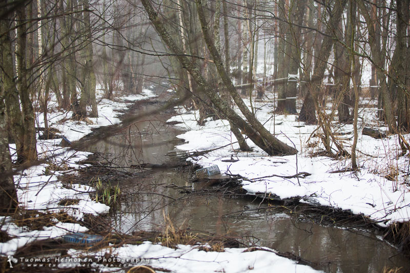 - Purojen jään päällä on virtaavaa vettä – Kuva: Tuomas Heineonen