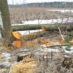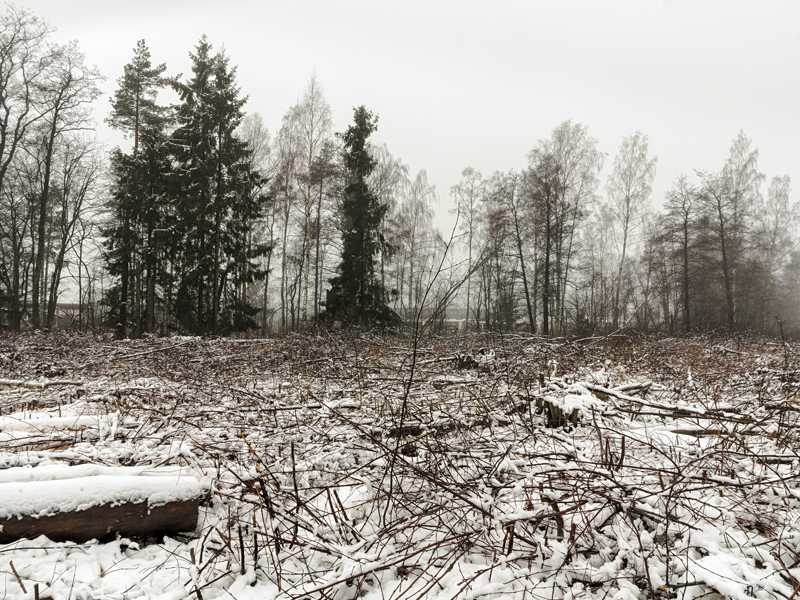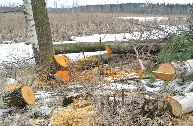 Altaan eteläreunalla on kunnostettu maisemaa kaatamalla puita ja risukkoa.