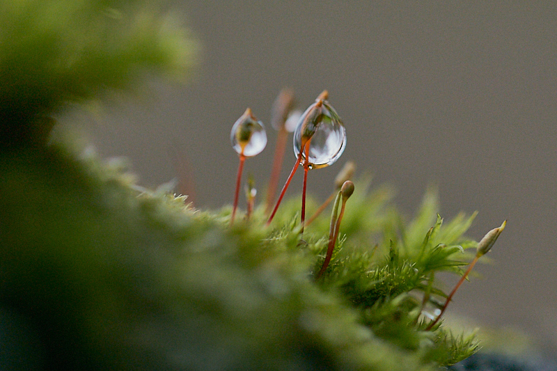 Jukka Ranta kertoo: ”Kuluneen viikon tiistaina, kun sade taukosi ja aurinkokin vähän pilkisti, kävin Suomenojalla. Sammaleet olivat saaneet koristeiksi kauniita pisarahelmiä. Hauska yksitysikohta oli puusta roikkuvasta narusta muodostunut pisarariipus.