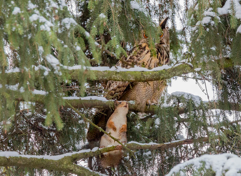 - Huuhkaja ja orava – Kuva Mikko Joensivu