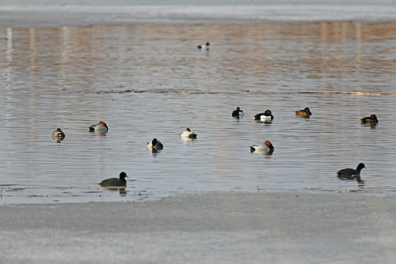 Kaunis sää houkutteli viikonloppuna paljon tarkkailijoita altaalle, vaikka allas on edelleen jäässä. Naurulokit laskeutuivat jäälle soidintamaan. Lauantaina kyhmyjoutsenpari sai seurakseen kaksi laulujoutsenta. Taistelua jäisestä altaasta ei vielä käyty vaan altaassa riitti tilaa kummallakin parille. Lyhyen vierailun jälkeen laulujoutsenet poistuivat altaalta.