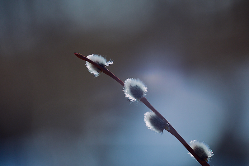 Kylmät yöt, mutta aurinkoiset lämpöiset päivät. Ruttojuuret alkoivat kasvaa nopeasti. Yllätys oli, että japaninruttojuuri työntyi esiin samaa tahtia etelän ruttojuuren kanssa. Ehkä tässä näkyy erikoinen kevään alku: kun lämpöisiä päiviä vihdoin tuli, elämä purskahtaa. Leppä aloittaa kukintaa ja pajut ovat edelleen kissoilla. Piiikkiohdake on hauskan takkuinen talven jälkeen.