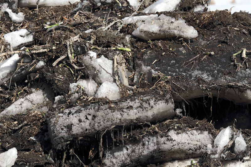 Pitkään jatkuneen talven hyvä puoli on se, että altaalle ei ole tullut vielä lintuja. Haitat pesintään jäävät pienemmiksi.