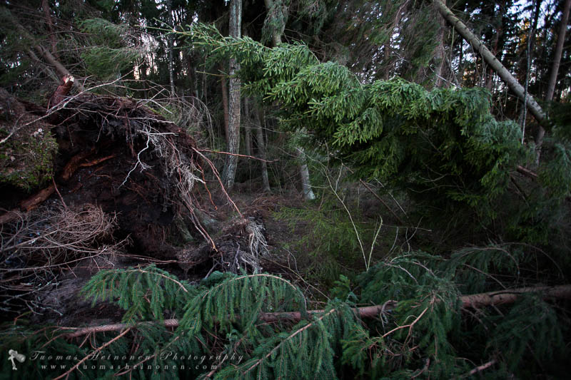 - Juurineen kaatuneita puita on runsaasti – Kuva: Tuomas Heinonen