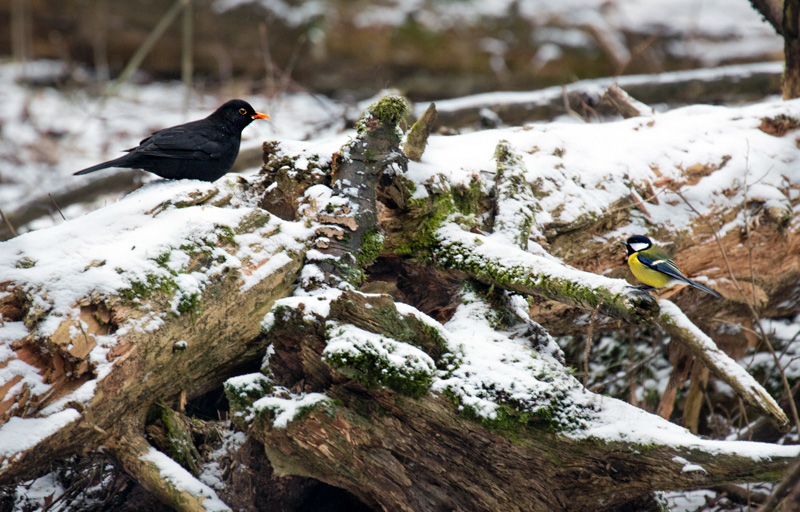 - Mustarastaan ja talitintin tuijotus – Kuva: Esa Mälkönen