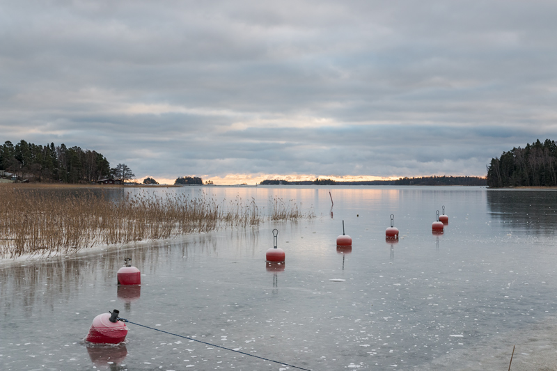 Joulun jälkeiset kylmät päivät toivat nopeasti jään altaalle. Keskiviikkona allas oli jo kauttaaltaan jäässä ja loppuviikolla arvioitiin jään olevan noin 10cm paksua. Se oli kirkasta ja sen läpi pystyi tarkkailemaan pohjassa olevia lehtiä. Myös Nuottalahti oli pitkälle jäässä jo keskiviikkona ja loppuviikkoa kohden jääpeite vielä laajeni. Tallitien metsän lampareet ja pikkuojat olivat jäässä.