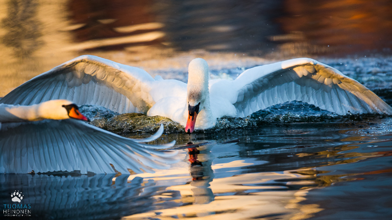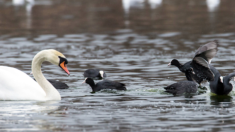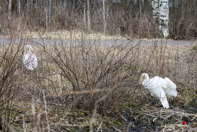 Yksinäinen joutsen palasi altaalle, joten tarina jatkuu – toisin kuin viikko sitten arveltiin. Pitkin viikkoa oli nahistelua. Viikonloppuna kaakkoisen sisääntulon kulmassa oli loukkaantunut kyhmyjoutsen, altaalla jo oleillut toinen yksilö tuli häätämään sen pois. Onneksi taistelua ei tullut, vaikka vasemmasta jalasta loukkantunut yksilö ei kunnolla pystynyt kävelemään purolle. Kaksi viikkoa sitten kerrottiin kyhmyparin taistelusta, jossa altaalle hyökkäävästä parista toinen loukkasi vasemman jalkansa. Lähti jäälle karkuun, klenkkasi vaivoin jäällä ja makasi jalka kummassa asennossa. Kun hätisteltiin pois, pääsi hädin tuskin lentoon. Olisikohan kysessä sama yksilö. Jos on, niin sitten puoliso on hylännyt sen. Toki voi olla parin vuoden takainen leski, joka on nyt loukkaantunut parin viikon kahinoissa.