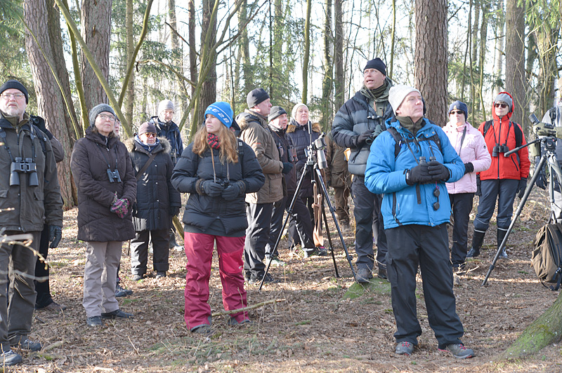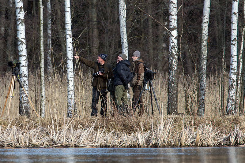 Yhtävarmasti kuin muuttolinnut tulevat altaalle, tulevat myös opastetut linturyhmät. Kuvassa Espoon Ympäristökeskuksen järjestämä kevätretki. Oppaina Punakettu Eppu Blomqwist ja Mika Aronen