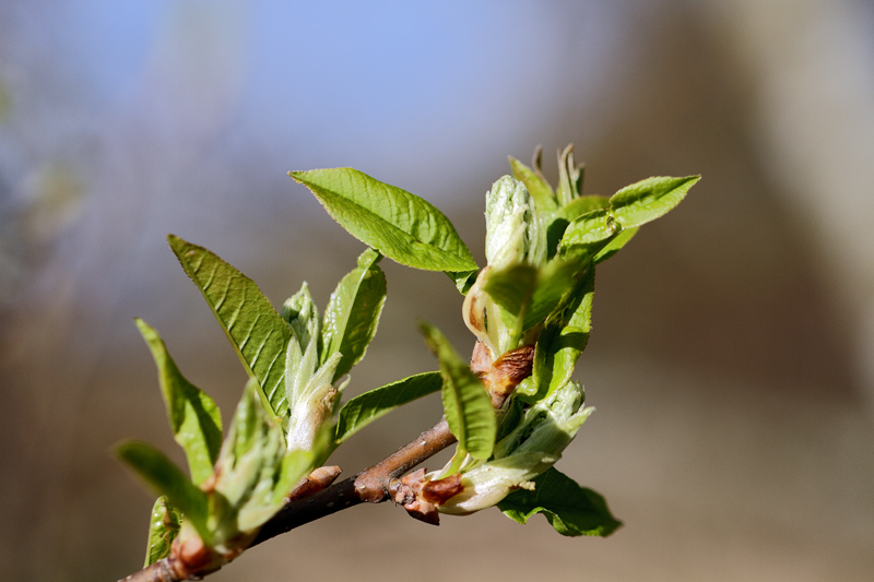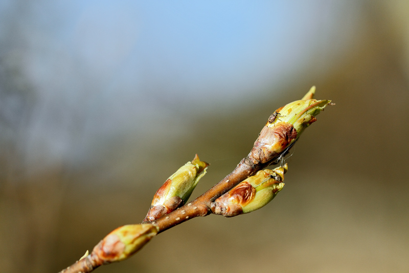 Raportin kaksi ensimmäsitä kuvaa on samasta tuomen oksasta maanantaina ja lauantaina. Muutos oli miltei nähtävissä.