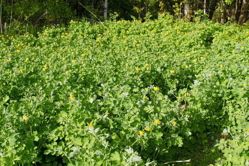 Kun matkaan jatketaan kohden allasta, on nokkoskukkulan jälkeen metsän reunassa laaja keltamokasvusto. Vaikka nykyisin keltamo lasketaan Suomen luontoon kuuluvaksi, lienee tämän unikkokasvin tarina samankaltaien rohtoraunioyrtin ja eteläruttojuuren kanssa. Lääkekasvina viljelty ja sittemmin asutusten liepeillä pysytellyt, joten ei ole yllätys, että se on Suomenojalla. Syytä on huomata, että se on erittäin myrkyllinen – erityisesti katkenneesta varresta valuva neste.