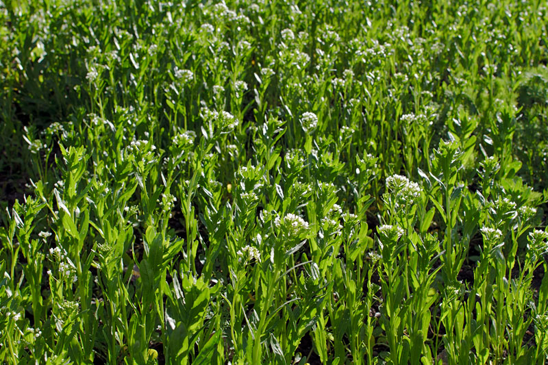 Ristikukkaisista puhuttaessa tulee toukokuussa ensimmäisenä mieleen peltokanankaali. Antaahan se keltaista väriä täyttömaalle. Mutta nyt löytyy myös valkoisia ristikukkaisia. Täyttämaalta löytyy, erityisesti puhdistamolle johtavan betoniputken varrelta valkoista litulaukkaa. Ruoholaukan (ruohosipulin) kanssa sillä ei ole muuta tekemistä kuin haju ja lehtien sipulinmaku, mihin laukkanimityskin viittaa – kuten myös englanninkielinen nimi garlic mustard. Paikoissa, jossa kasvusto on laaja, voi tuoksun aistia koskettamatta kasvia. Täyttöharjanteen pohjoisosassa on varikolle viettävä multainen rinne, jossa kasvaa kynsimökrassia – ja se muodostaa lajille tyypillisesti mattomaisen, tiehän kasvuston. – Jukka