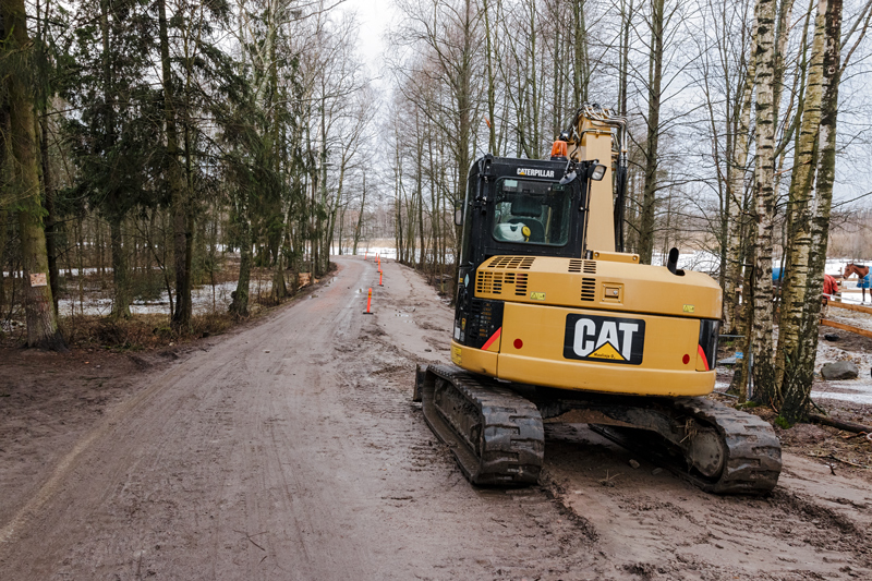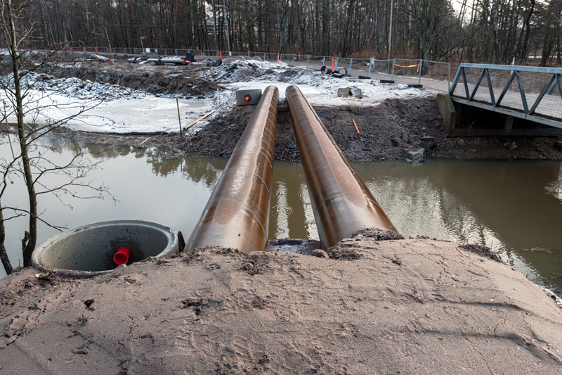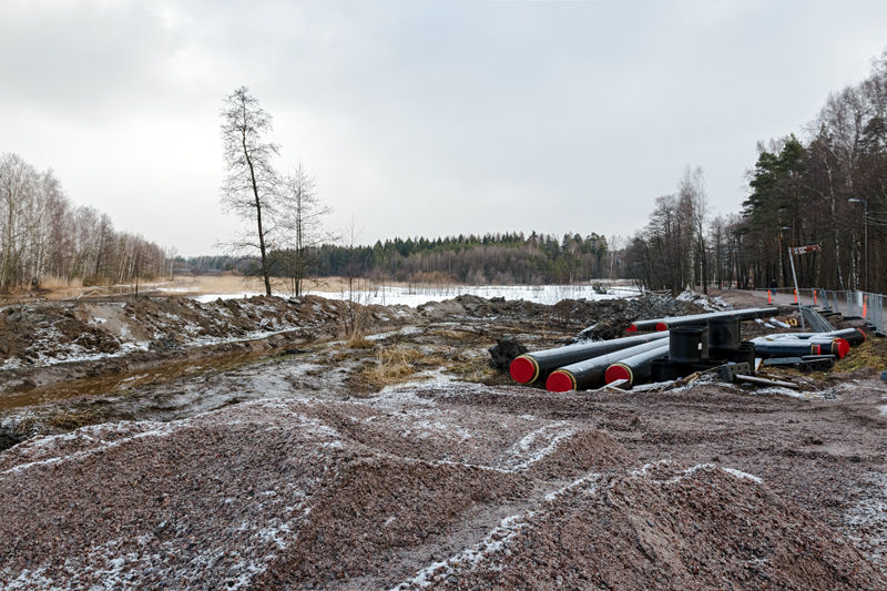 Talven näkyvä rakennusprojekti altaiden lähiympäristössä on ollut kaukokylmätyö. Sekin on kohta valmis. Tallitien varrella on putket saatu maahan ja kaivuun painopiste on Kalastajantien varrella. Puron ylitys odottaa vielä viimeistelyä.