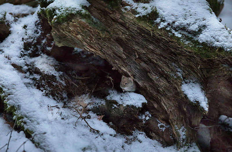 Metsämyyräkannat ovat kasvussa. Ne voivat lisääntyä myös talviakaan, ja nytkin voi nähdä pieniä yksilöitä. Paul Stevens tiivistää omia havaintojaan ruokintapaikalta: ”Myyrät juoksevat kaatuneiden puiden oksien alla ja lumen alla, mikä suojaa niitä pedoilta. Ne ovat myös nopeita eivätkä vietä paljon aikaa avoimissa paikoissa, joissa voisivat paljastua pedoille”.