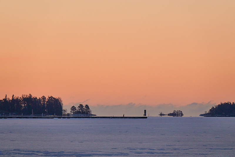 ”Seurantajaksoon mahtui muutama komea aurinkoinen aamu. Pitihän ne hyödyntää. Kuluvien viikkojen aikana aurinko nousi likimain kaakosta. Tämä merkitsi sitä, että esimerkiksi laituri 29 oli sopiva paikka havainnoida Nuottalahden auringonnousua. Bonuksena oli kuun sirppi Pirisaaren yllä.