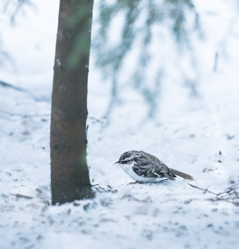 Vuoden alun säät olivat vaihtelevia, mutta välillä saatiin myös kauniisti lunta. Lumisateesta on hyötyä lajiseurannassa, sillä vastasataneeseen lumeen jääneistä jäljistä voi tunnistaa ruokintapaikan vieraita hämäräajalta ja yöltä, kuten viime aikoina metsäkauriin ja kärpän.