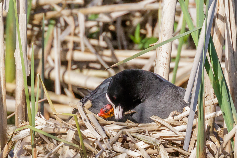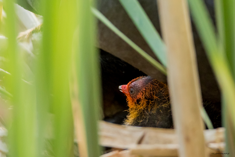 Kesäinen tunnelma näkyy myös lintualtaalla. Nokikanan poikaset tulivat esiin ja uiskentelevat jo altaalla.