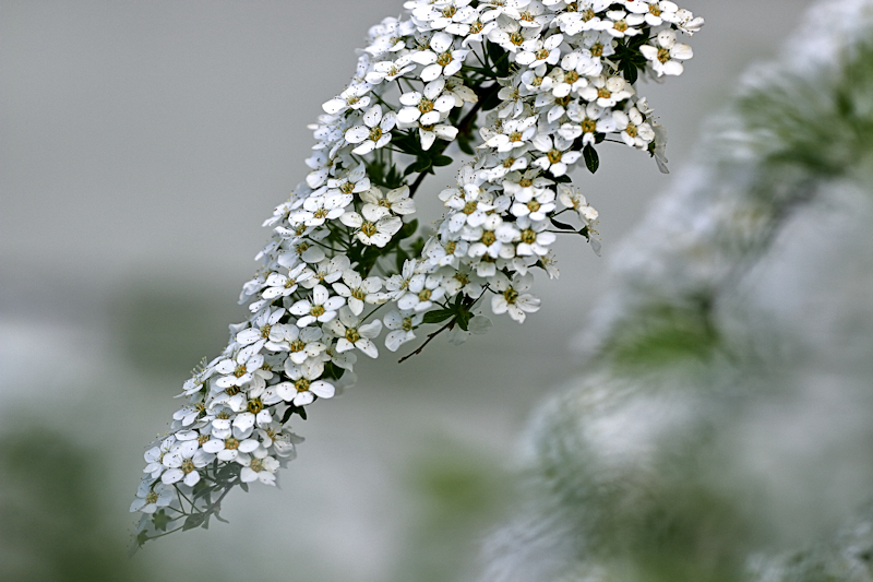 Täyttömäellä, japaninruttojuurten yläpuolella kasvaa norjanangervo. Se on nyt kukassa ja on komean näköinen. Pensas näkyy hyvin kaukolämpöputkelta (etelänruttojuurten kohdalta). Pensas täynnä valkoisia kukintoja ja sitä on vaikea olla huomaamatta. Syksyllä pensas on kauniissa ruskassa.
