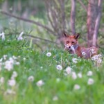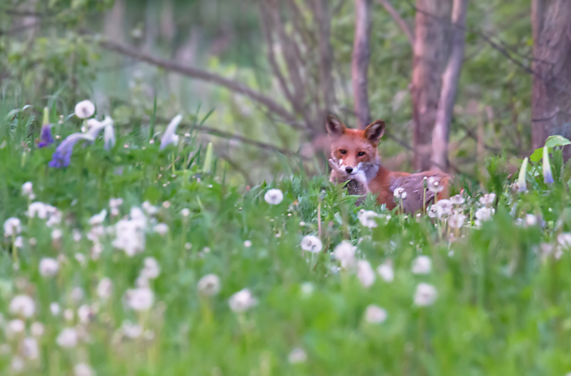 ”Perjantai-iltana puoli ykstoista tulin altailta nokkoskukkulan ohi ja siinä juuri ennen autopaikkoja oli kettu jotain tuijottaen.Tempaisin kameran silmille, ja silloin kettu huomasi, nappasi jotain mukaansa ja livisti. Minä perään. Kettu pysähtyi muutaman kymmenen metrin päässä hetkeksi katsomaan tuleeko sieltä joku.