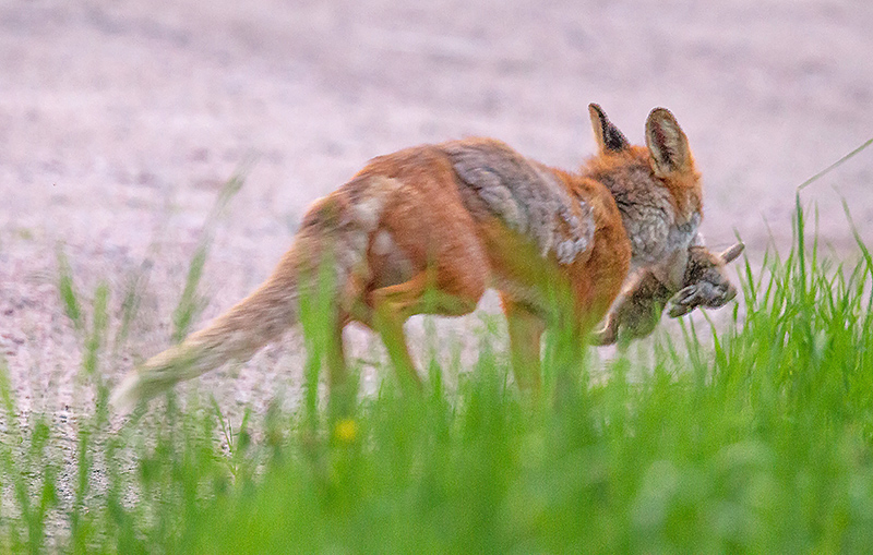 Vasta kuvasta näki mikä sillä oli – rusakon poikanen (tai jäniksen poikanen, mikä ei niin todennäköistä). Siinä sitä sitten mietti josko olisi tullut puoli minuuttia aiemmin, olisko saanut kuvattua ketun saalistuksen…
