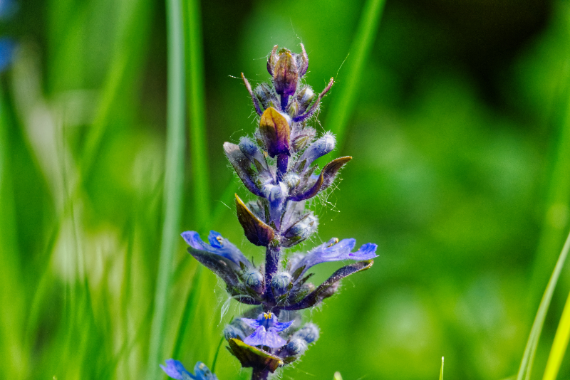 Parkkipaikalta lähtevän läntisen kävelytien reunalla, lähellä läntisten kävelyteiden risteystä on kasvanut pieniä, noin 10 cm korkeita huulikukkaisia (siis peippien sukulaisia) toukokuun puolivälistä saakka. Ne ovat piilossa voikukkien ja heinän seassa. Ohikulkijat ovat varmaan ihmetelleet, kun olen kontannut kävelytien reunalla yrittäessäni saada kuvia niistä ja tunnistaa niitä. Ainakin maahumalaa, niittyhumalaa ja kartioakankaalta olen löytänyt. Viimeksi mainittu on kuvissani. Myös Tallitien metsän läpi menevän kävelytien reunalla kasvaa jonkin verran näitä samoja kasveja.