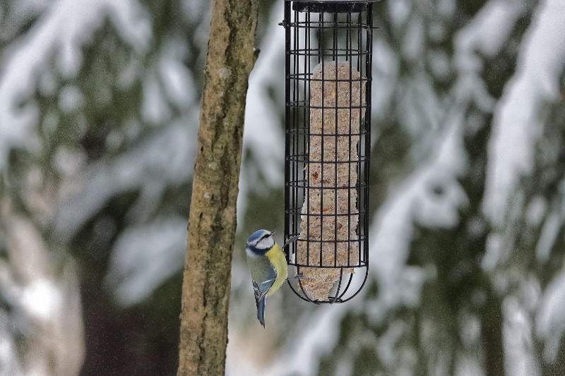 - Sinitiainen ruokailee – Kuva Jukka Ranta