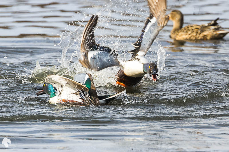 Eteläisen lintutornin edusta antoi parhaat kuvausmahdollisuudet toistaiseksi ja lintuja ollut sen edessä hyvin. Lapasorsakoiraat taistelivat myös naaraan huomiosta aivan tornin edustalla näyttävästi. Näitä tilanteita pääsee harvoin kuvaamaan läheltä.