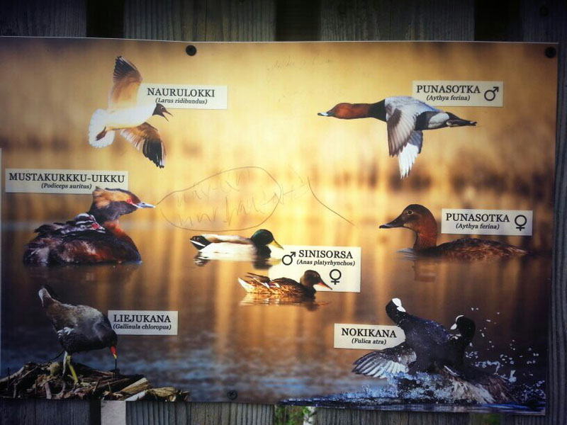 - Lintutornin opastauluja on tuhrittu- Kuva: Krista Ylinen