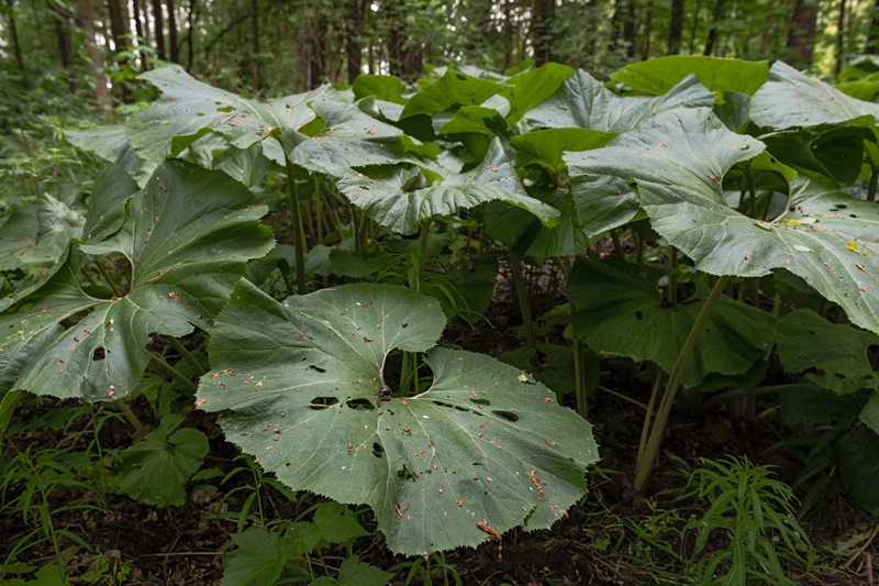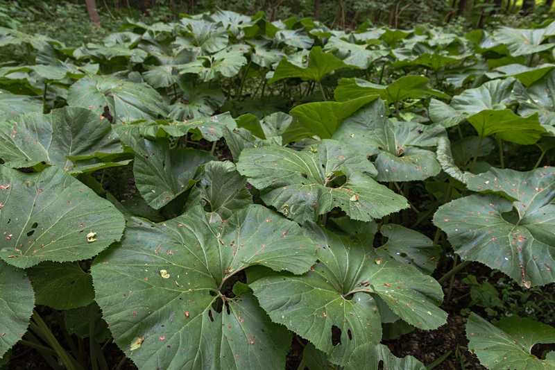 Olen japaninruttojuurten kasvuston vieressä parina vuonna ihmetellyt, miksi kasvusto on kuin istutettu puutarha – siisti ja ei muita lajeja. Voi olla, että ainakin tallitien viereisen metsän kasvusto on peruja vanhalta talolta tai maatilalta. Muu kasvisto viittaa vahvasti siihen. Mutta nyt tiedän (JR) muunkin syyn: kukinnan jälkeen nousi esiin valtavat lehdet (isommat kuin etelänruttojuurella) ja ne taitavat hyvin tehokkaasti estää kaiken muun kasvun. Tajuan myös paremmin mitä tarkoittaa, että vieraslajit tukahduttavat muiden lajien kasvun.