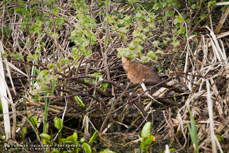 Piisamit olivat hyvin esillä joka puolella allasta. Isojen teleobjektiivien lyhyimmät tarkennusetäisyydet olivat koetuksella, kun karvapallot nousivat rantakasvuston sekaan ruokailemaan. Piisami on altaan ehdottomasti lutuisin kaveri, joka ensimmäisessä Suomenojan Luonnon näyttelyssäkin sulatti ihmisten sydämiä.