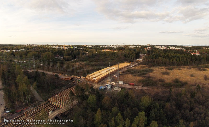 Tulvaniityllä sillan rakenteet pidentyvät päivä päivältä. Ollaan jo miltei päästy koko tulvaniityn yli.